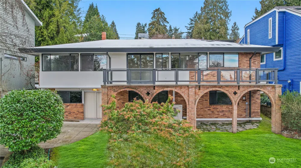 Elegant mid-century modern in Sheridan Heights! Enjoy views of the snowcapped Cascades. Tiled entry leads to the spacious living room w/ hardwoods, wood burning fp & picture windows that look out to the lengthy glass railed balcony. Primary bdrm on main floor has AC and the bathroom features a double vanity & heated floors. Walk down the terrazzo slab staircase to the lower level and you will find a large rec room, 3 bedrooms, a full bath w/ heated floors and walk in wine cellar. Large, landscaped grounds & circular driveway. Carport equipped with Tesla charger. Monthly landscaping included. Pets CBC w/ deposit. Convenient commute to both Seattle and the Eastside. Close to the Burke Gilman trail, Lake Washington and LFP shopping center.