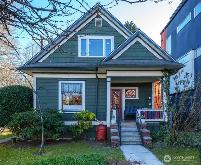 A beautiful melding of original detailing with modern updates, this stunning 1904 Craftsman delights at every turn. Ideally sited on a corner lot, perfectly placed windows bathe the rooms in light. The main floor highlights rich original molding and soaring ceilings, an open floorplan perfect for entertaining, and two serene guest bedrooms and attached full bath with clawfoot tub. The upstairs was recently reimagined as a separate apartment or rental and features gorgeously preserved fir floors, a quaint kitchenette with eating space, a tile-laden three quarter bath, and a generous bedroom with green scape territorial views. Located in one of the last pocket communities still waiting to be developed and only minutes to downtown Seattle.