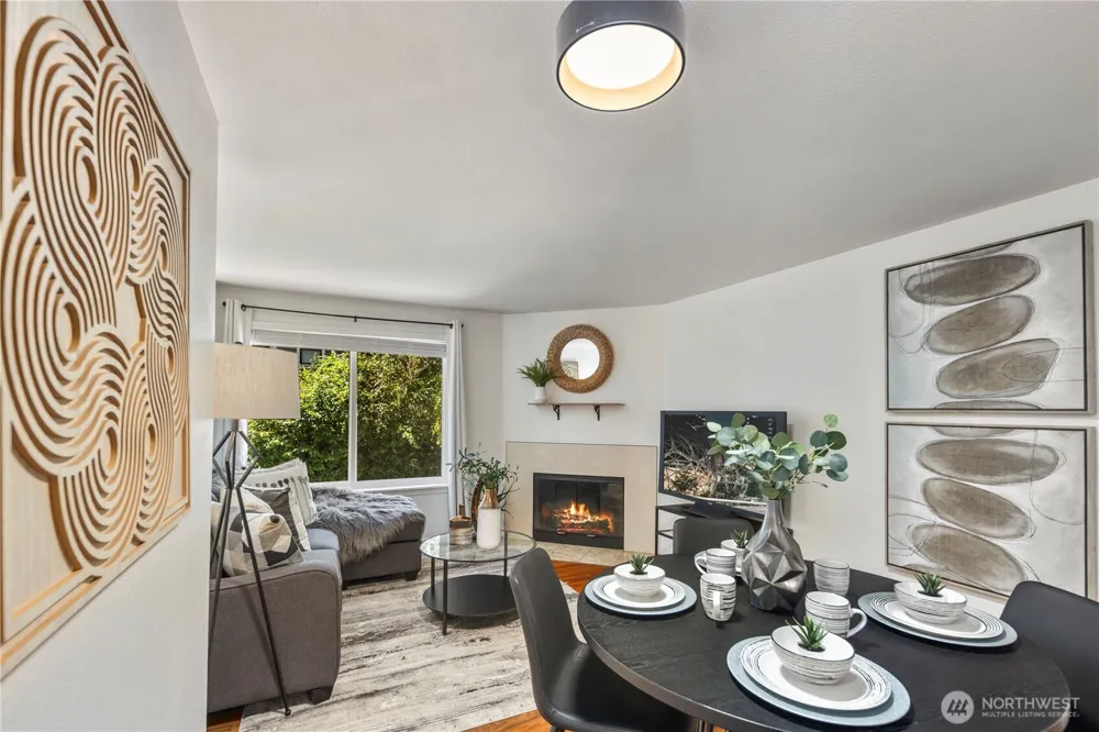 Tucked away on the peaceful, quiet side of the building, this light-filled corner unit offers 2 bedrooms, 1 bath, and effortless, move-in ready living in a prime Magnolia location. The open layout features a spacious living room with a cozy fireplace, in-unit washer/dryer, and large windows that invite natural light throughout. Enjoy the ease of dedicated parking in the secured garage and the flexibility of no rental cap—ideal for both homeowners and investors. The building has seen major updates in recent years including new siding, windows, roof, and decks, ensuring lasting value. Close to Ballard, Queen Anne, Expedia, downtown, and the future Dravus light rail station, this location offers unbeatable access to the best of Seattle.