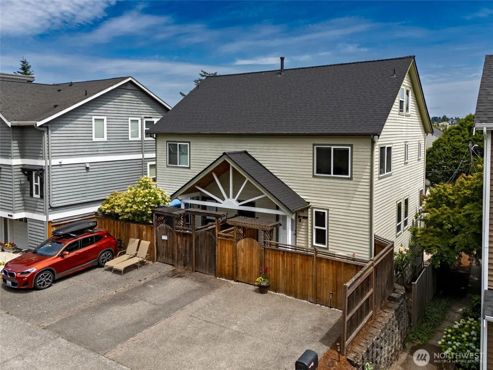 Large Home with territorial views & all the right features! Sizable living spaces, 2 fenced outdoor spots for entertaining and gardening & 2 dedicated off-alley parking spaces with level entry. New roof, new flooring, new HWH, newer south fence & new window treatments. Open-concept main level has chef's kitchen with SS appliances, vent hood & California pantry. Seamless flow to the dining & living areas with gas fireplace. Upper 2nd level has 2 beds and 2 baths including Primary Suite with walk-in closet. Top level is perfect for home office with ridiculous amount of storage. Full-height lower has family room + 1/2 bath & laundry area. NO HOA. Nice location offering effortless commutes to Downtown/Ballard/SLU. You will love living here!