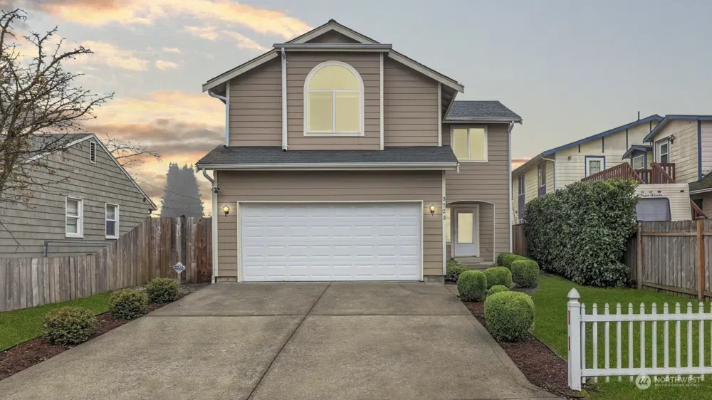 Welcome to Tacoma! Move-in ready 2-story charmer w/ vaulted ceilings & inviting open concept kitchen, dining & living space. Skylights flood the space w/ natural light year-round, creating a bright & airy atmosphere. Spacious primary suite boasts vaulted ceilings, generous walk-in closet, & full bathroom complete w/ double vanity. Step outside to fully-fenced backyard featuring expansive deck - perfect for entertaining, cozy fire pit for relaxing evenings, & convenient storage shed. Air conditioning, plenty of extra storage & 2-car garage w/ built-in workspace. Conveniently located within mins of I-5 & the Tacoma Dome. Don't miss it!