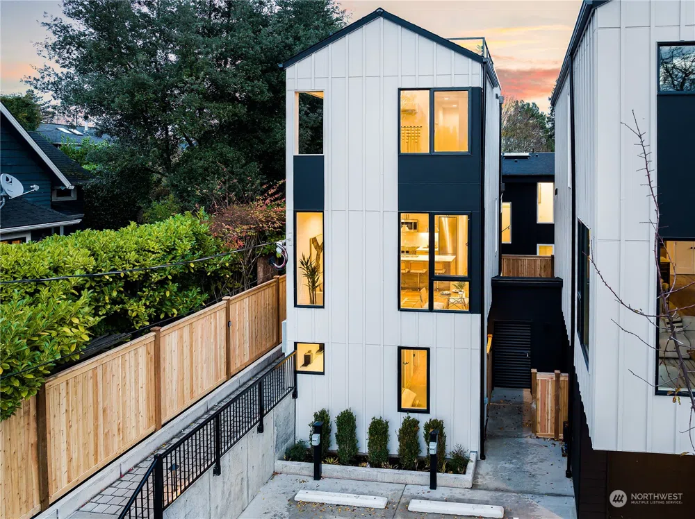 Welcome to an exceptional 3-home collection by Mirra Homes in the highly desirable Wallingford neighborhood! This home masterfully combines contemporary style with functionality, open-concept layout plus a bonus room with direct access to the driveway that is perfect for storing outdoor gear and hobbies, or easily converted into a home office or gym. The primary suite features vaulted ceilings and a private deck, while the stunning rooftop terrace with views of the Seattle skyline and Lake Union provides the perfect space to entertain. Year-round comfort with A/C and a designated parking space with EV charging. Close to Gas Works Park, Burke-Gilman Trail access, and an easy north-south commute. Experience urban living at its finest!