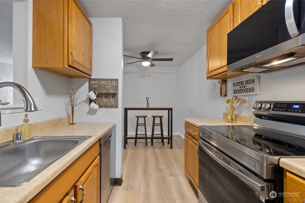 This refreshed condo offers a comfortable lifestyle with modern amenities and a prime location. Enjoy new appliances, fresh paint, and flooring throughout as you enjoy peek-a-boo views of Chambers Bay from the private balcony. With 2 bedrooms and 1.5 bathrooms, this condo provides ample space for comfort and privacy. The convenient in-unit washer and dryer has upgraded steam features to add an extra touch of convenience, making laundry day a breeze. Additional features include a pool, perfect for cooling off on hot summer days, covered parking for your vehicle, and extra storage space. You’ll enjoy the peace and tranquility of top floor living while having easy access and privacy with a convenient elevator and secure building access.