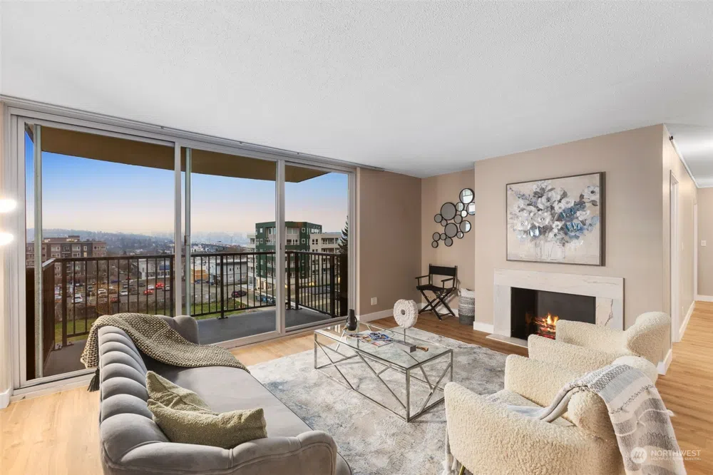 Welcome to Haven in the City - Union to U-District this property is accompanied by breathtaking 180-degree views of the Seattle Skyline, Lake Union and rolling hills. This 2 bedroom Condo with spacious balcony is ideally facing South, allowing you to experience the best of Seattle's natural beauty & urban charm. Seattle City View! As you step inside this retro turned modern Condo you'll be greeted by enormous double pane windows that frame incredible panoramic vistas perfect for entertaining, take a dip in the large heated outdoor pool or hit the Gym & Suana. NO SPECIAL ASSMNT & NO RENTAL CAP. Hoa dues include: Electric, Earthqke Insc, Garbage, Sewer, Water, Security, Cntrl Hot Water, Common Area. Condo sold w/ 1 Garage parking & 1 storage.