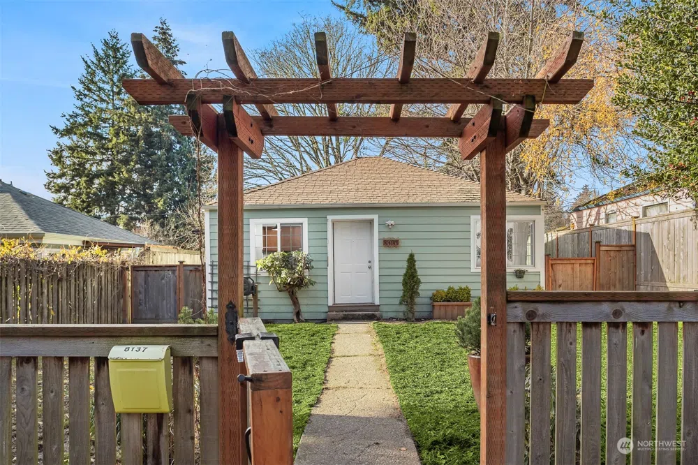 Enter under the arbor into a private, fully fenced sanctuary. This cozy, chic home offers a livable layout with room to expand. Its fashionable features give it style & flare, while the original elements are reminiscent of its mid-century build. The oversized 1-car garage with alley access could easily be an office or flex space - perched not far from the main building. Recent upgrades include new siding, windows, new electrical, kitchen counters, tile flooring & paint. The 2 lockable gates are conveniently placed on both sides of the home to keep pets contained to the front or back yard. Gather outside in the summer months, and relax by the corner windows when its cold. this home has what you need to compliment your simple lifestyle!